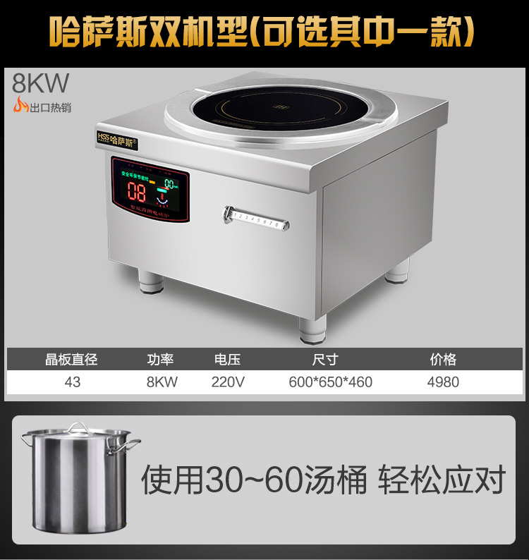 哈萨斯(HASASI)商用电磁炉8000w电磁灶大功率商业电炉灶电灶台